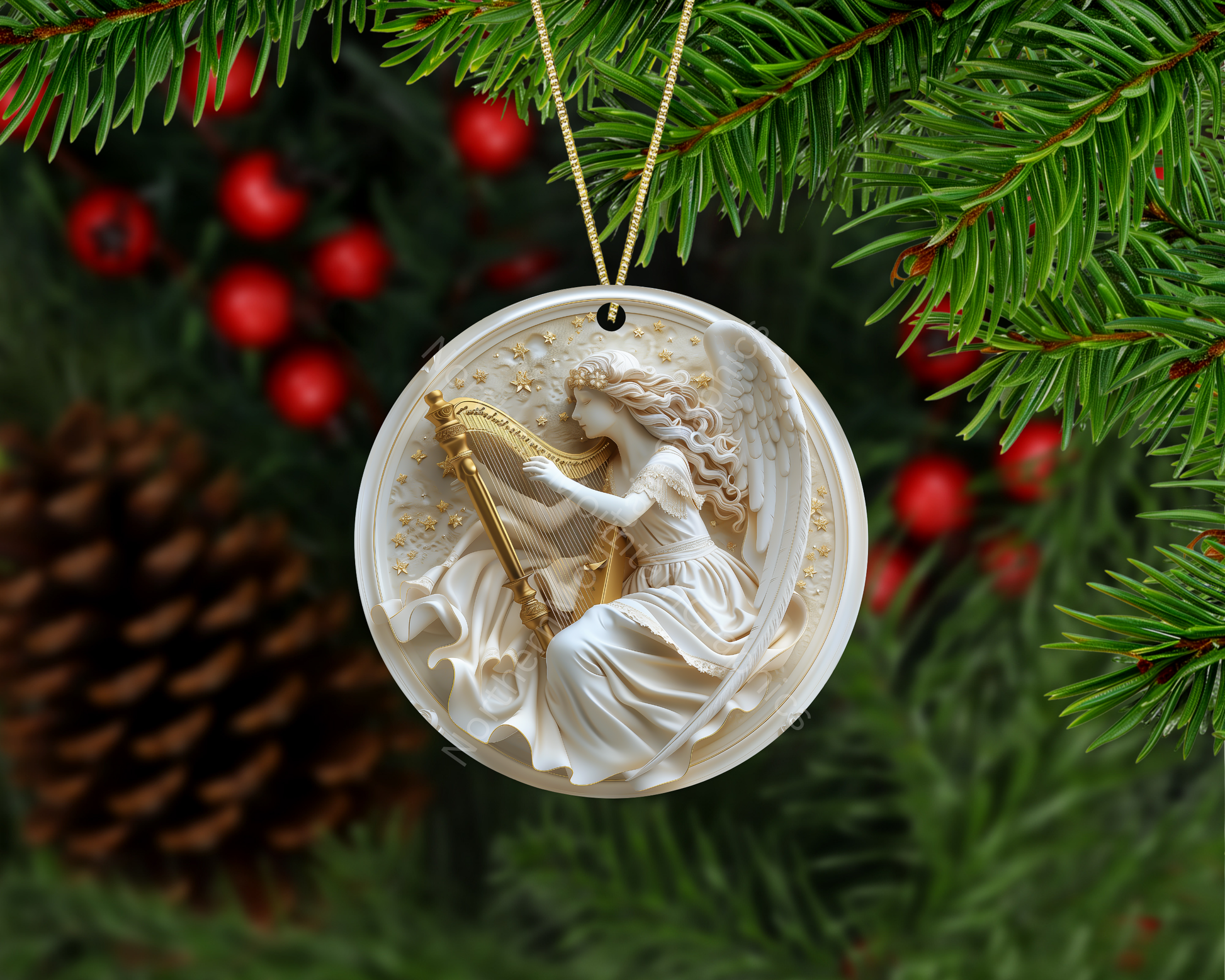 Kneeling Angel With Harp Christmas Ornament