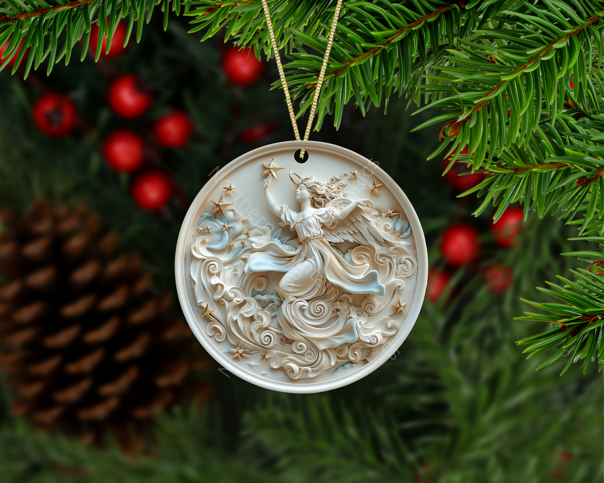 Celestial Angel in Gold and Ivory Christmas Ornament