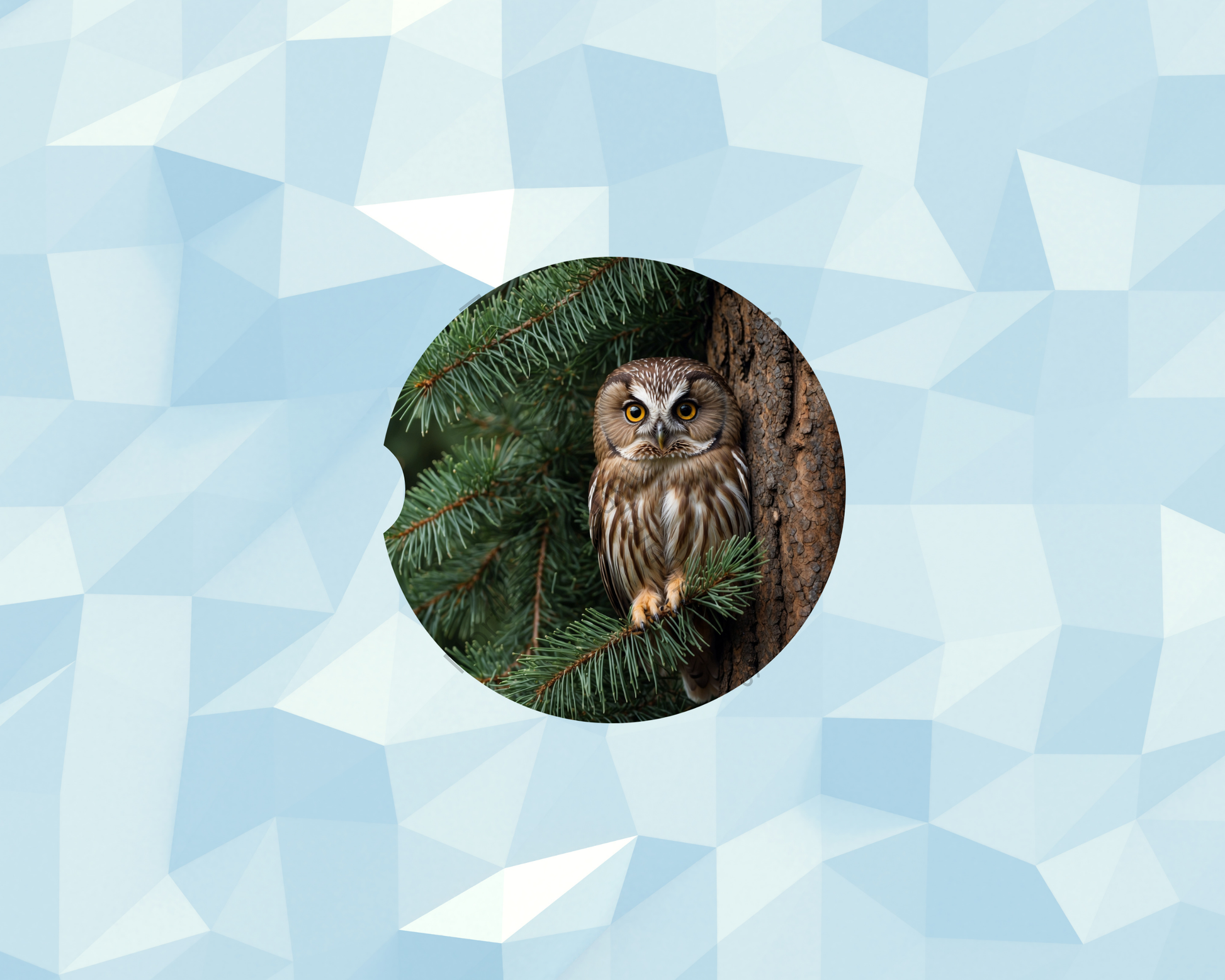 Protect your car's interior while adding a touch of woodland charm with this sublimated owl car coaster. Featuring vibrant, fade-resistant graphics that bring nature's wisdom to your dashboard, this durable coaster absorbs moisture from drinks and keeps your surfaces pristine. The non-slip backing ensures it stays securely in place during every drive. Perfect for nature lovers and owl enthusiasts who refuse to compromise on style or functionality.