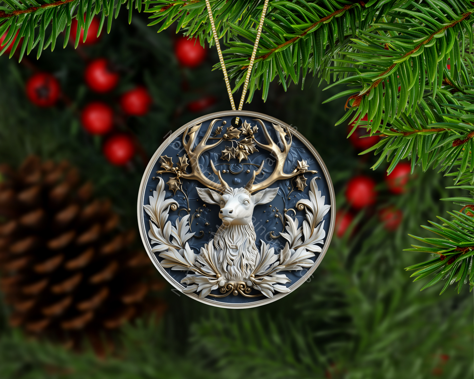 Golden-Antler Reindeer Crest Christmas Ornament